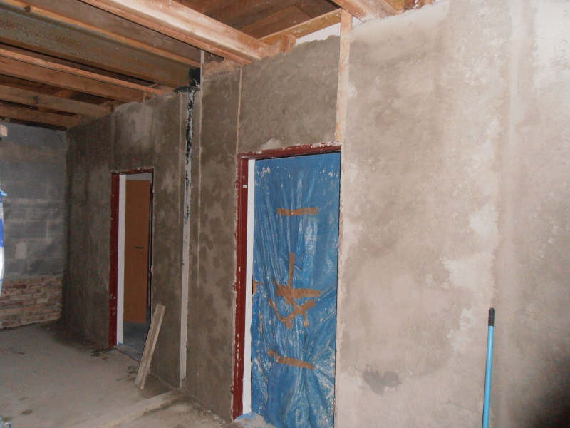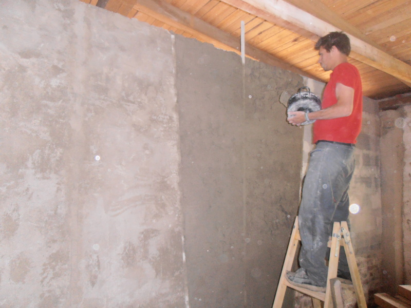 V sobotu přijeli ještě Renča s Tomášem, kteří se pustili do omítání fajnovou omítkou.
