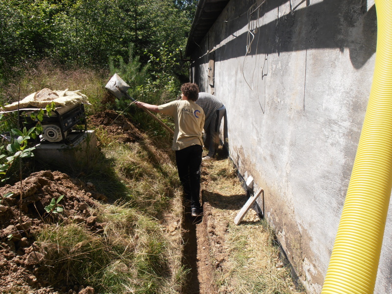 Ve středu dorazila posila ve formě Romaina, který převzal práci na výkopu a do středečního večera se mu jej podařilo dokončit. My ostatní jsme během toho připravili bednění na betonový věnec, který jsme po čtvrtečním příjezdu Čápa a Jerryho společně vytvořili.