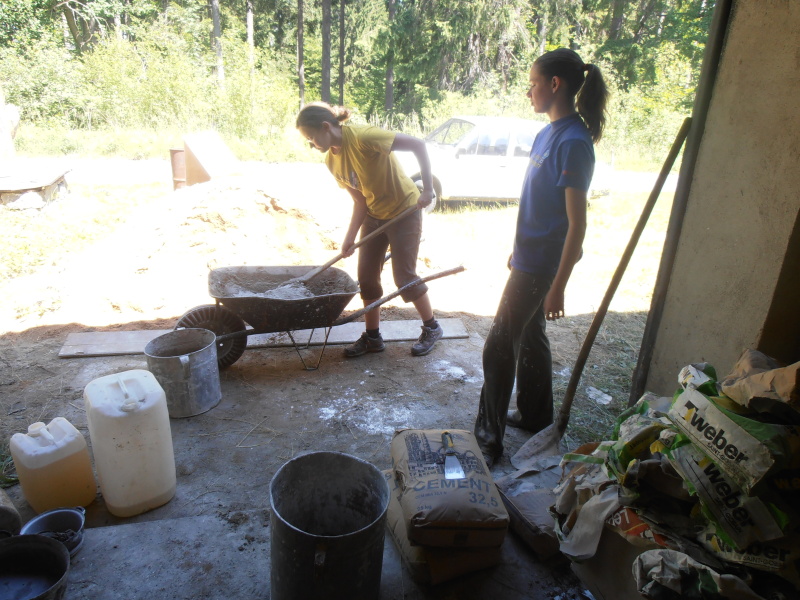 Romain s výkopem výrazně pohnul Holky míchají omítku, aby práce odsejpala