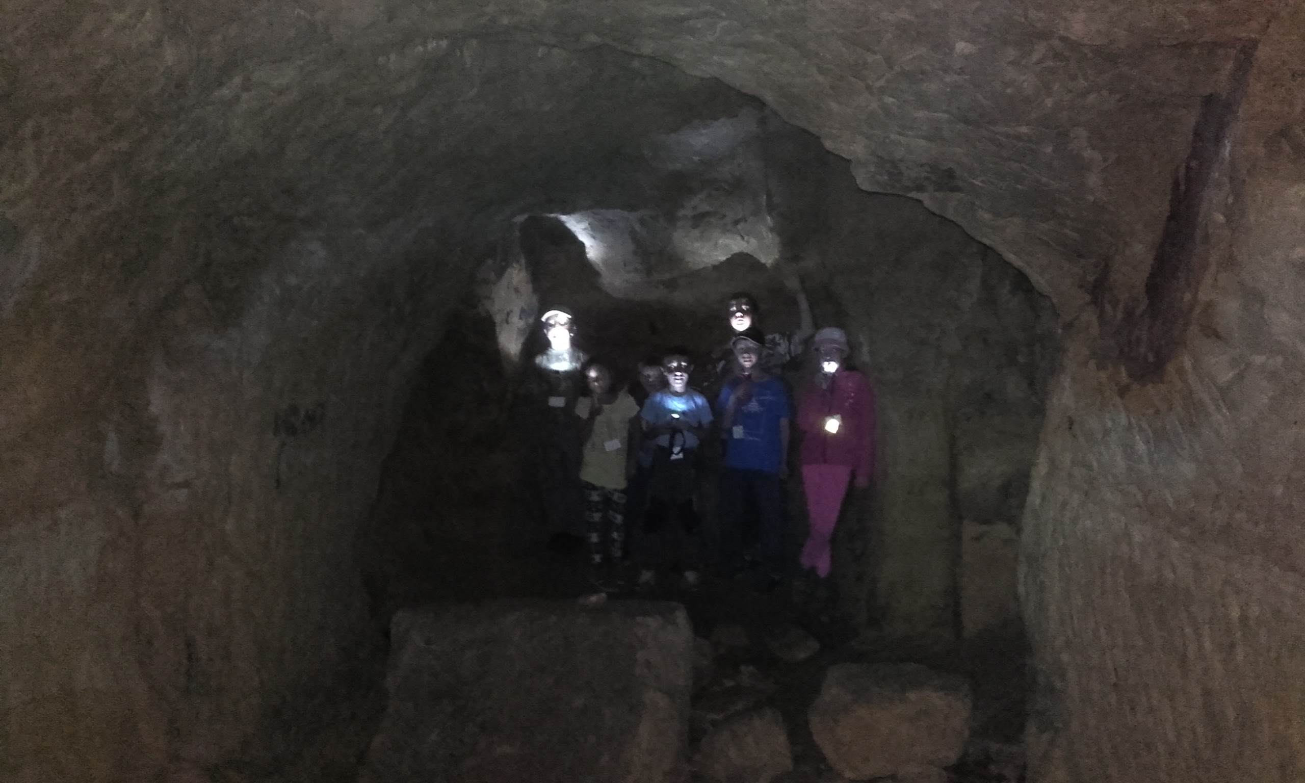 Mnozí mají trochu kalhoty od písku, protože vlez do podzemí nebyl zrovna velký. Ale v pískovcových puklinách na stropě chodby jsme objevili zajímavé kořeny nějakých stromů či rostlin z povrchu. Taky na stěnách bylo vidět, jak chodbu její stavitelé hloubili pomocí majzlíků a krumpáčů. Standa na konci chodby viděl prý kosti, ale náhodou jsme tam objevili kešku.