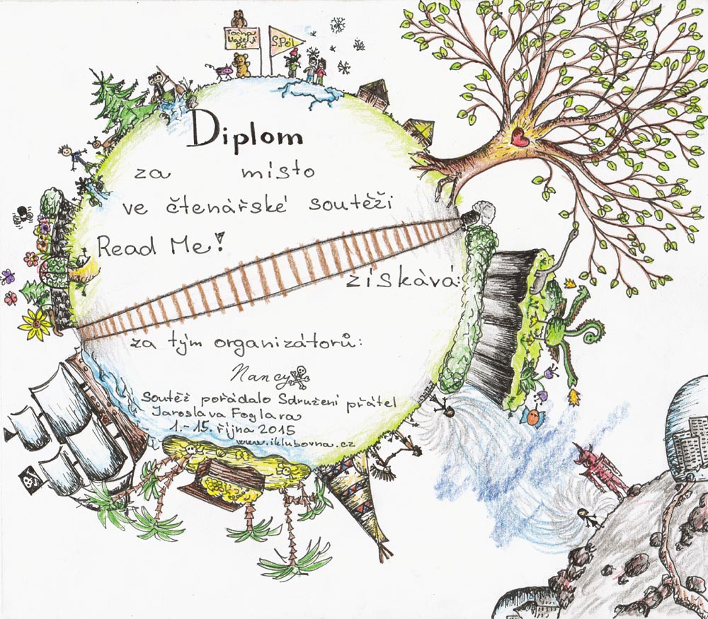 Ahoj Jojo, děkuju, diplom jsem dělala já, jsem ráda žes poznala, co všechno tam je, právě o to mi šlo, jsou tam obrázky ke všem knížkám, co bybly letos v Read Me ;)