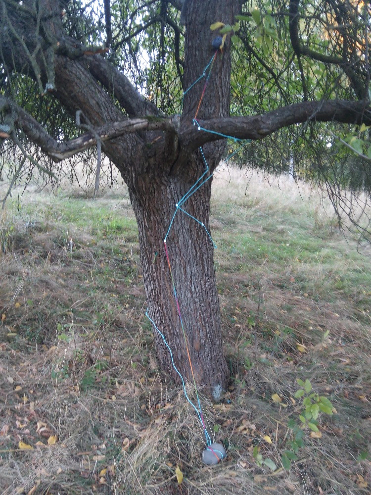 Problém nastal, když jsme zjistily, že na některých místech stromu je kůra podstatně tvrdší a špendlíky tak odmítaly držet, ale pokud opominu tenhle fakt a několik dalších faktů (asi dvakrát na mě vyskočil pavouk a už jsem ani nepočítala, kolikrát jsem se stačila bouchnout do hlavy), mohu říct, že stavba probíhala v pořádku.