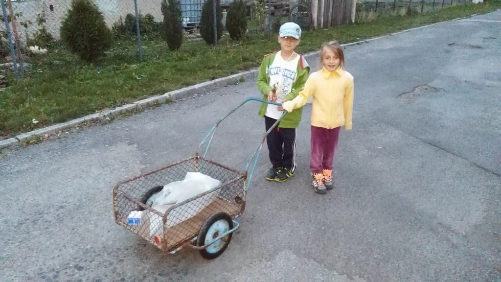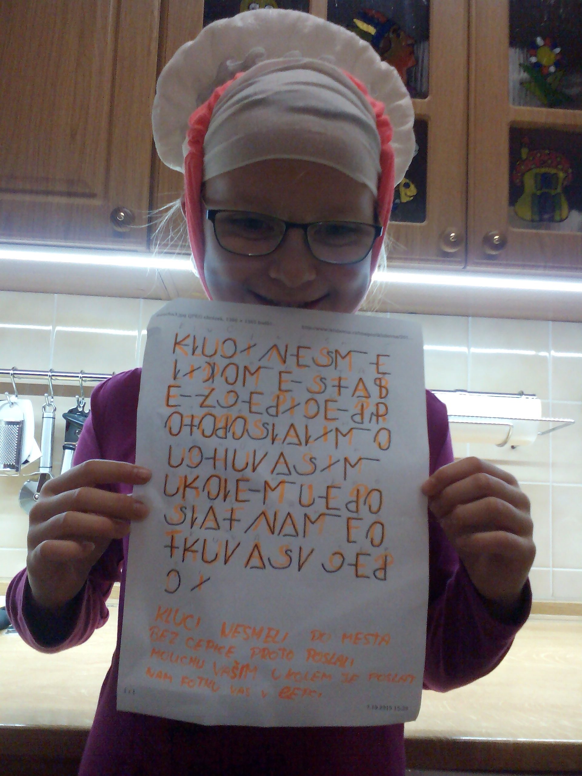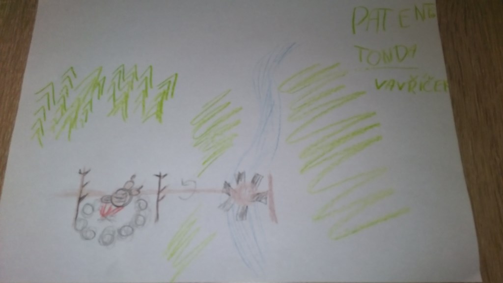 Anička V ještě neumí číst a psát, takže text za ní přeložil brácha, ovšem nakreslila nám svoji dvojnici: